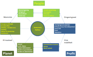 Om handen en voeten te geven aan duurzame ontwikkeling gebruiken we het schema van een drie-kapitaalbenadering. Die drie kapitalen zijn: het sociaal-culturele (people), het ecologische (planet) en het economische (profit).